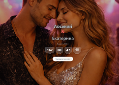 Disco Movies — это взрыв ярких красок, неона и эстетики. Шаблон создан для пар, которые не представляют свою свадьбу без танцев до утра, блестящих нарядов и атмосферы настоящего праздника.